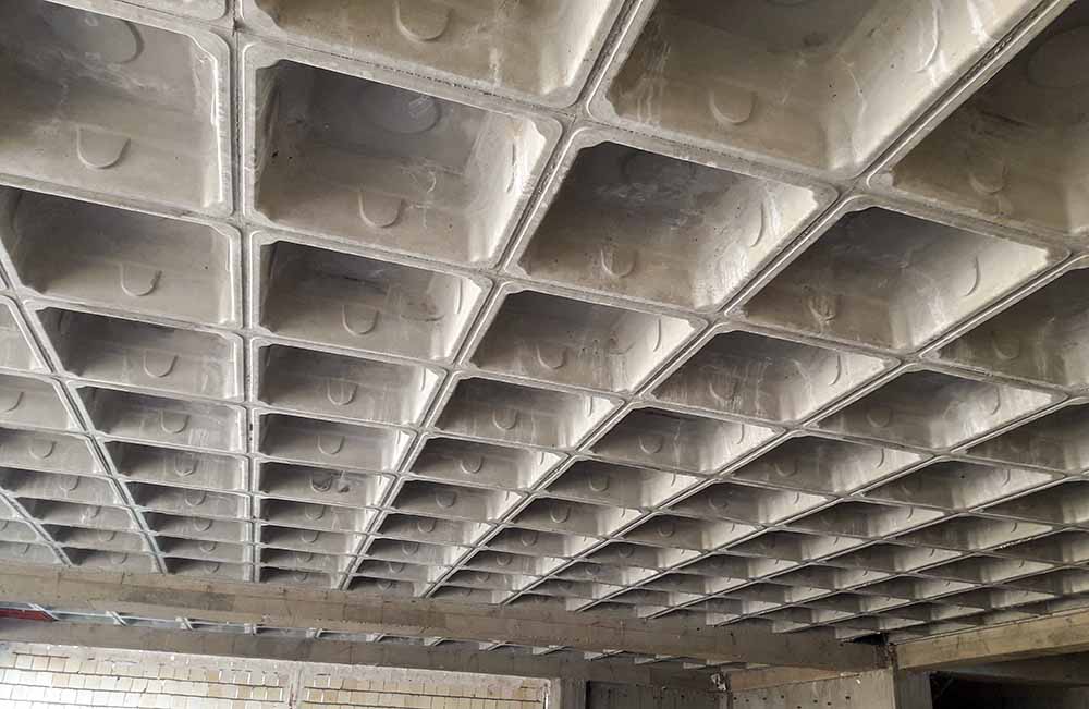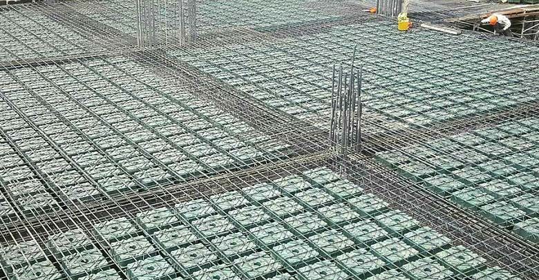 - قرارگیری دو لایه دال بهصورت مشبک در قسمت بالایی و پایینی سقف مجوف که باعث ایجاد استحکام زیادی در بالای دال میشود و این امر نیروهای زلزله را به عناصر باربر جانبی انتقال میدهد.
